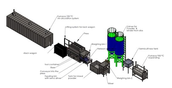 Fully automated production line for the production of vermiculite boards.